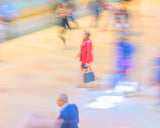 A woman walks through the grand hall of Grand Central Station in New York City.